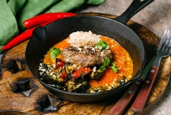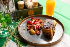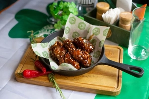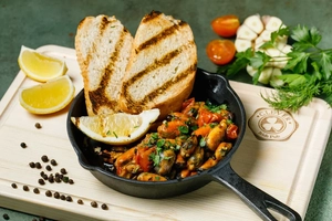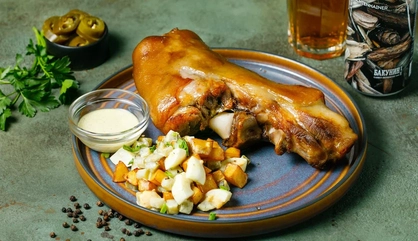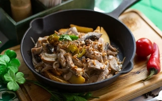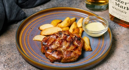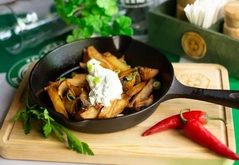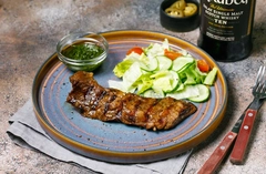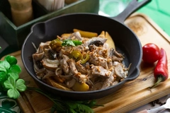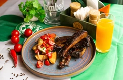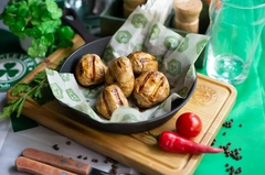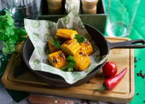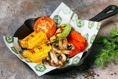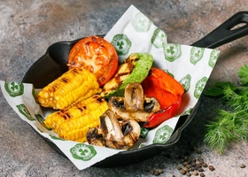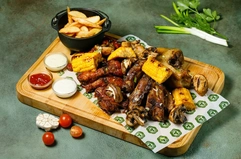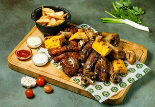 куриные крылья, свиные рёбра, рулька, колбаски гриль, картофель айдахо, шампиньоны, кукуруза